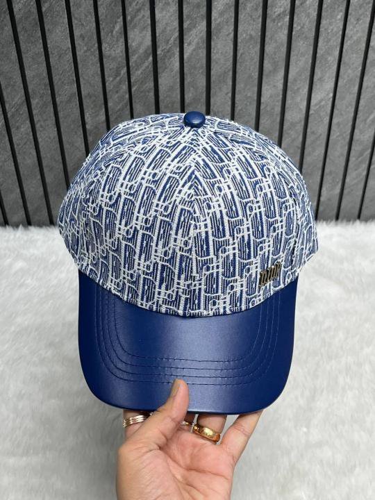 Dior_All_Blue_Monogram_Premium_Small_Side_Logo_Leather_Unisex_Cap_With_Safety_Box