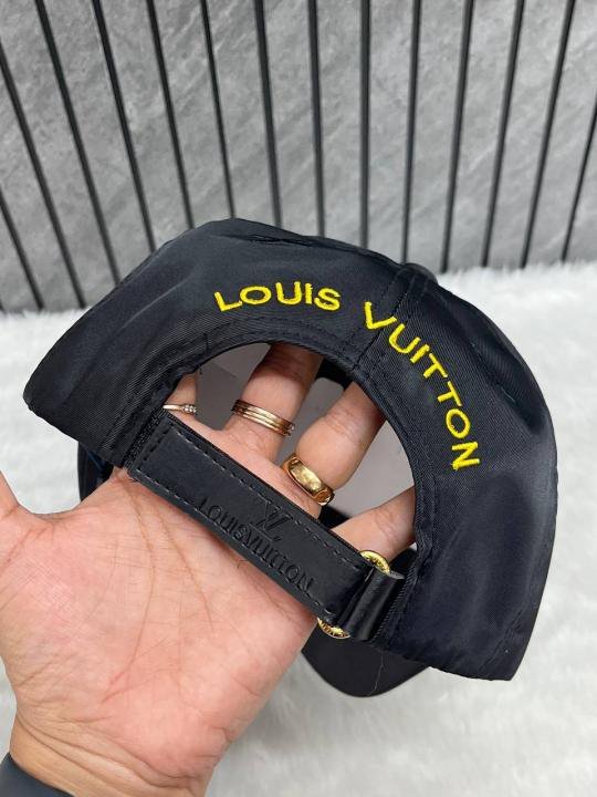 Louis_Vuitton_Nylon_Black_Small_Side_Logo_Flower_Top_Premium_Unisex_Cap_With_Safety_Box