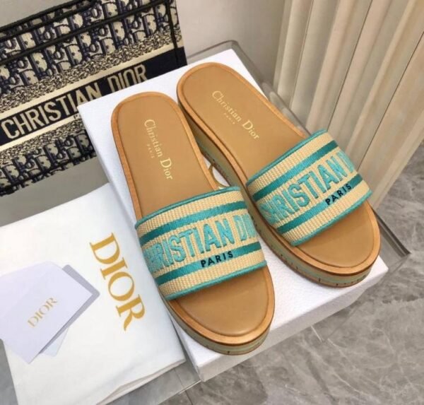DiorRiviera_Dior_Dway_Platform_Raffia_Slides_For_Women_With_Original_Box_And_Carry_Bag