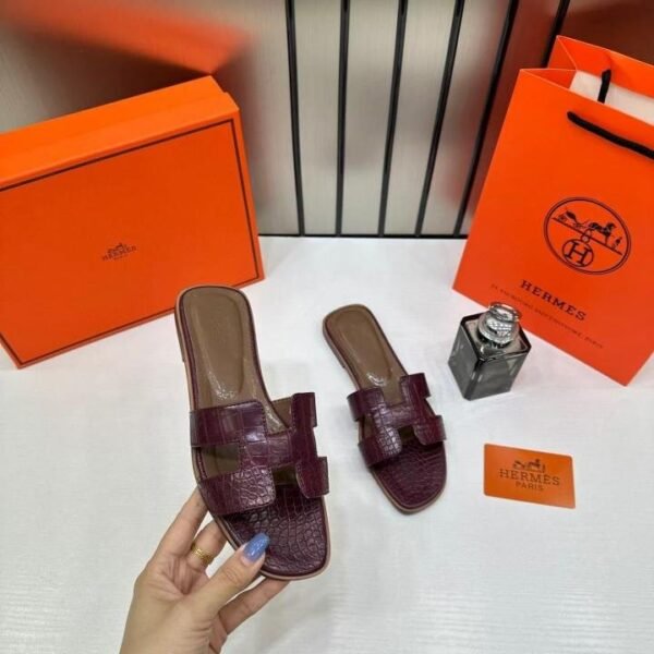 Hermes Paris Oran Flats Croc Leather White For Her With OG Box & Carry Bag Maroon