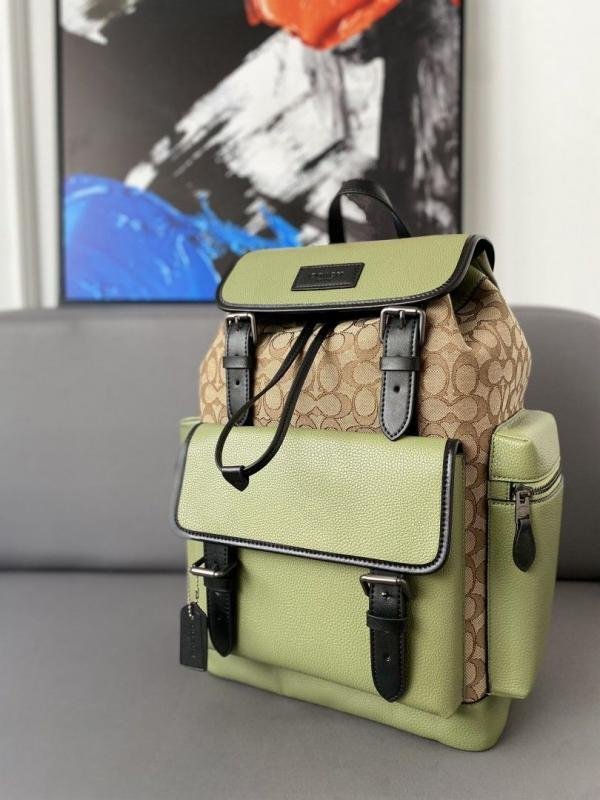 Coach_Unisex_Rivington_Backpack_Green_Leather_High_Quality_With_Dust_Bag_CE523_Green