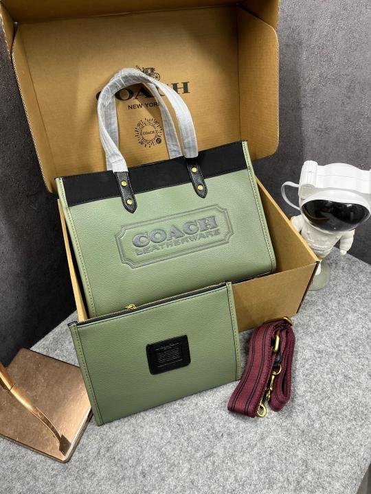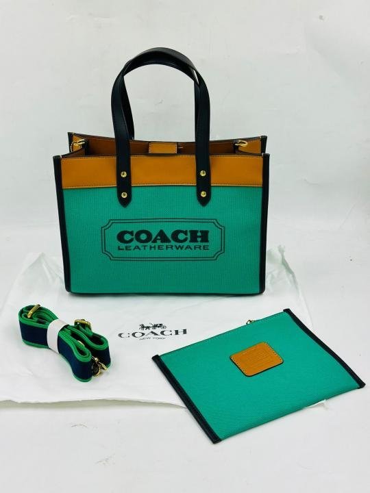 Coach_Field_Tote_30_Authenic_Green_Canvas__Leather_With_Pouch_OG_Box_&_Dust_Bag_6739_Green