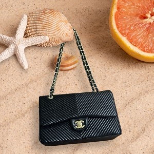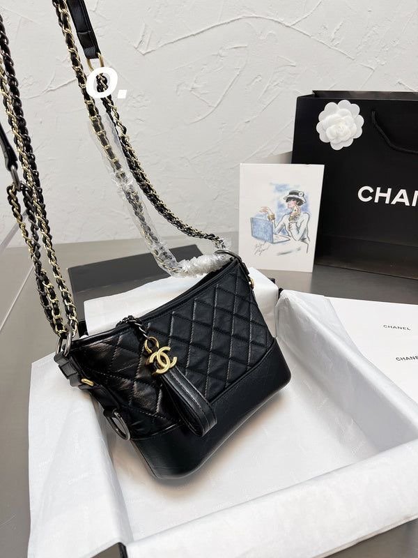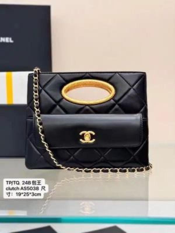 CHANE.L BLACK SHINY PREMIUM LEATHER TOP HANDLE WITH OG BOX & LABUBU DOLL FREE GIFT