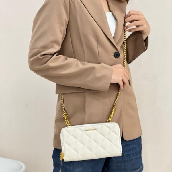 Charles & Keith CK Chain On Wallet With OG Box & Dust Bag (White – 860)