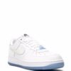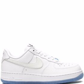 This version of the Air Force 1 Low appears with a white leather construction adorned with a blue logo plaque at the laces and a two-toned rubber sole. Nike’s Swoosh logo appears on the sides and the ‘Nike Air’ logo appears at the rear in black tone.