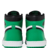 The Air Jordan 1 Retro High OG ‘Lucky Green’ dresses the iconic silhouette in familiar color blocking that mirrors one-half of the 2009 Air Jordan 1 ‘Defining Moments Pack,’ inspired by Michael Jordan’s 63-point playoff performance against the Boston Celtics in 1986. The high-top sports a smooth leather upper, featuring a white base with contrasting hits of black on the forefoot overlay, Swoosh, and padded collar. Lush green accents land on the heel overlay and ankle flap, marked with a retro Wings logo on the lateral side. The shoe earns its OG designation with a woven Nike tag atop the breathable nylon tongue.