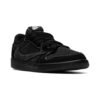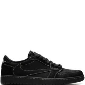 x Travis Scott Air Jordan 1 Low sneakers from Jordan Kids featuring black, calf leather, signature Swoosh logo detail, signature Air Jordan Wings logo, logo patch at the tongue, contrast stitching, round toe, front lace-up fastening, branded insole, rubber sole and Release date: December 15, 2022. These styles are supplied by a premium sneaker marketplace. Stocking only the most sought-after footwear, they source and curate some of the most hard to find sneakers from around the world..