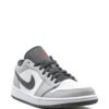 Grey/white rubber/leather Air Jordan 1 Low sneakers from JORDAN featuring signature Swoosh logo detail, signature Jumpman motif, contrasting panel detail, round toe, front lace-up fastening and rubber sole.