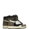 The Travis Scott x Air Jordan 1 High OG TS SP features a new look on the iconic silhouette, thanks to an oversized backward-facing Swoosh on the lateral side. A traditionally oriented Swoosh graces the medial side of the upper, which is built with a blend of white leather and brown suede. Additional unique details include a double-layer construction on the collar and Scott’s crudely drawn face logo embossed on the heel.