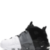 The Nike Air More Uptempo ‘Tri-Color’ features a perforated and smooth leather upper with a distinctive color-blocked scheme on the silhouette’s signature ‘AIR’ branding: white on the toe, grey in the middle, and black on the heel. Released in August of 2017, the design also includes a full-length visible Air unit, a continuation of the shoe’s color-blocking onto its outsole and a 3M reflective outline around each letter in the ‘AIR’ branding.