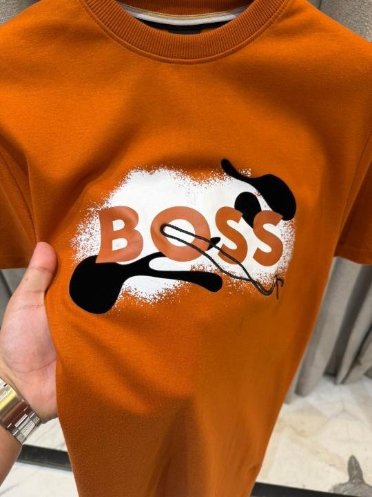 Boss Middle Brand Print Round Neck T-shirt Orange Brown