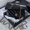 CHANE.L BLACK SHINY PREMIUM LEATHER TOP HANDLE WITH OG BOX & LABUBU DOLL FREE GIFT
