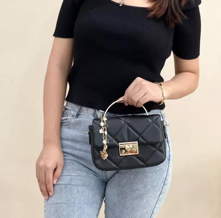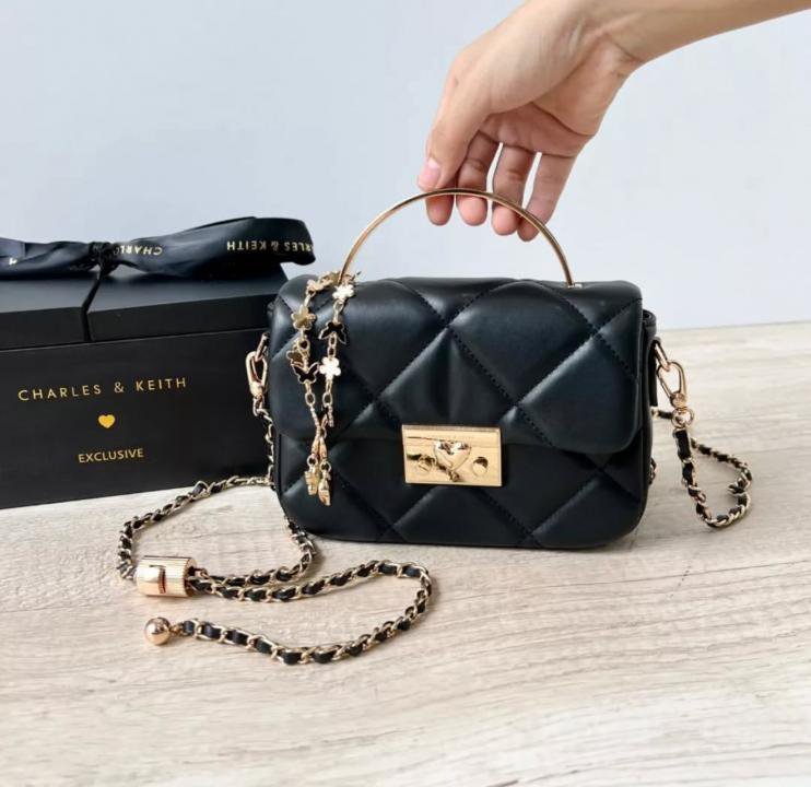 CHARLES KEITH HEART CHAIN BLACK BAG PREMIUM WITH GIFT BOX