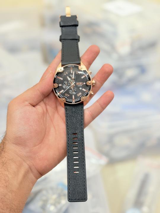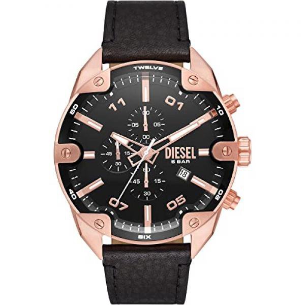 Diese_l Spiked Chronograph Black Leather Watch