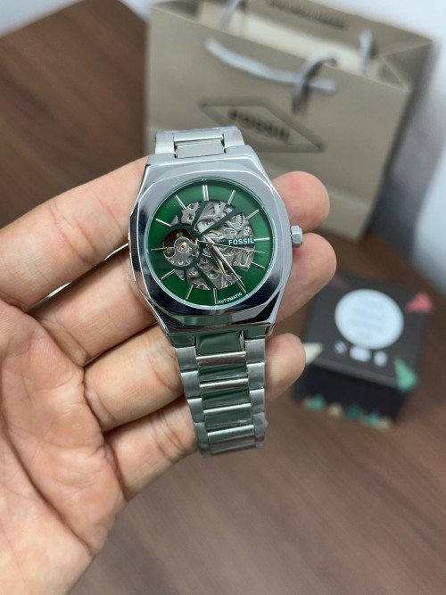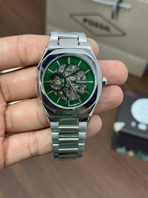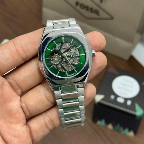 Fossi l Skeleton Automatic Silver Green