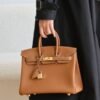 Hermes Brown Togo Leather Rose Gold Hardware Birkin Bag With Dust Bag & OG Box (BK25 Brown)