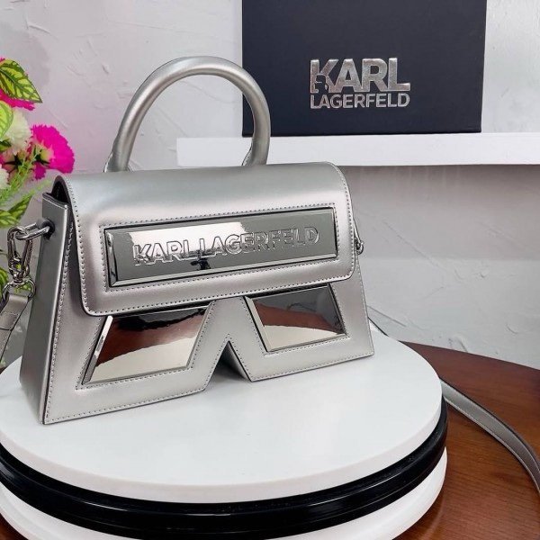 Karl Lagerfeld IKON Crossbody Shoulder Bag With OG Box & Dust Bag (Silver – 922)