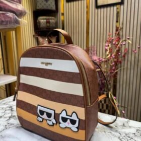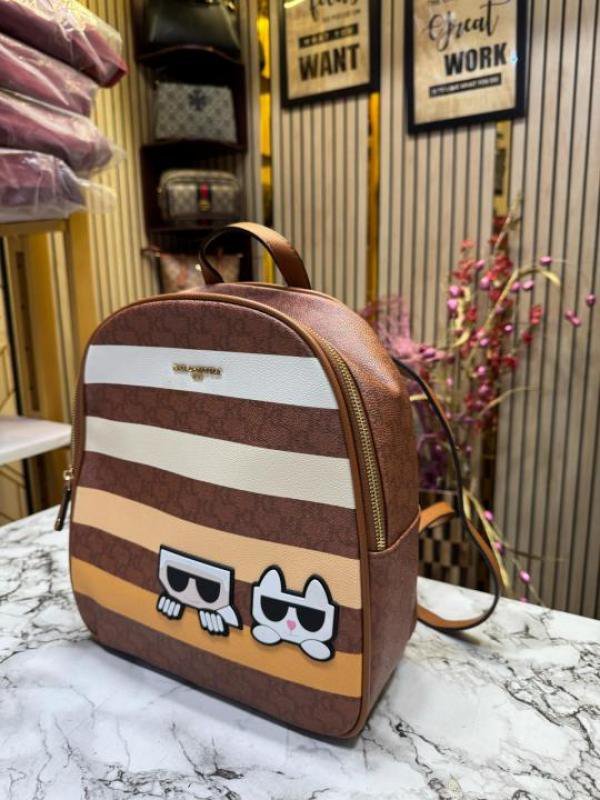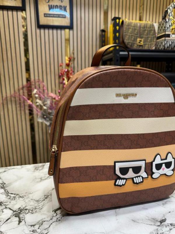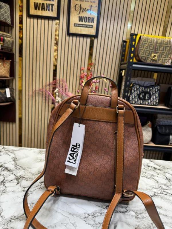 Karl Lagerfeld Paris Adele Multi Monogram Premium Quality Backpack With Dust Bag (Brown)