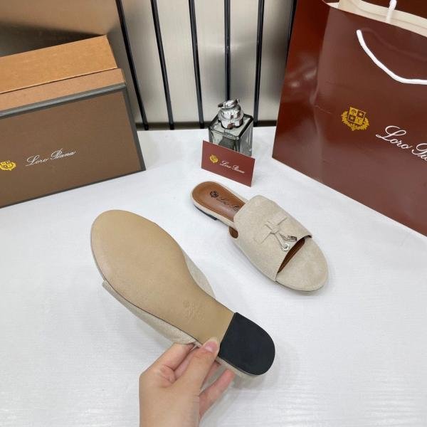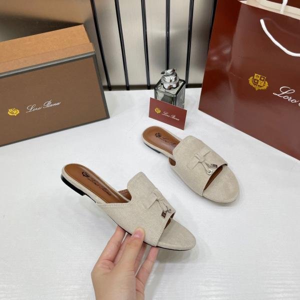 Loro Piana Summer Charms Grey suede Flat Slides For Her With OG Box Grey