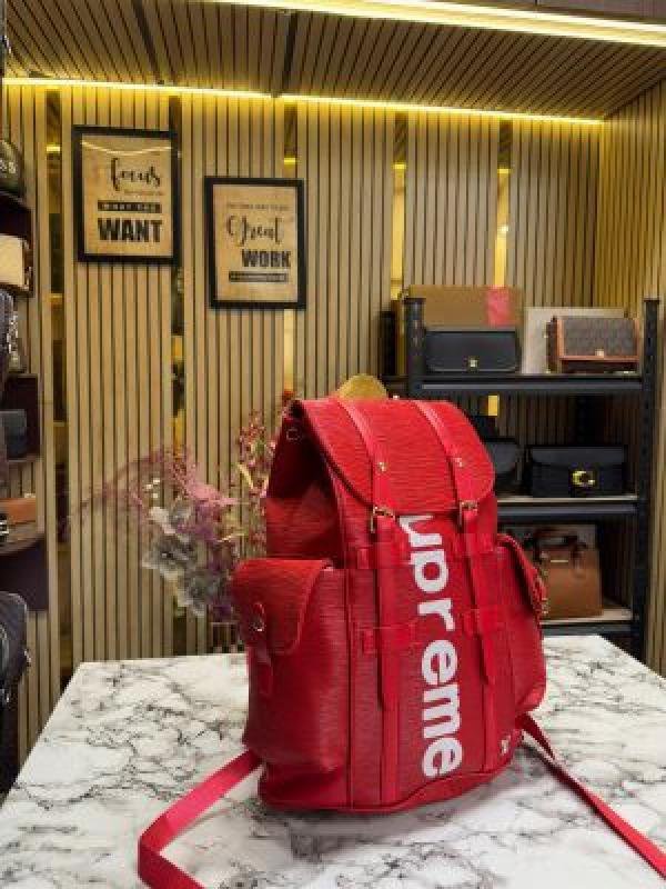 Louis_Vuitton signature X Supreme christopher premium quality backpack (Red)