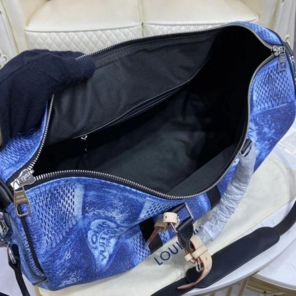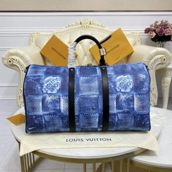 Louis_Vuitton_LV Damier Keepall Bandoulire Limited Edition Premium Unisex Duffle Bag With Dust Bag & Accessories (Ocean Blue – 683)