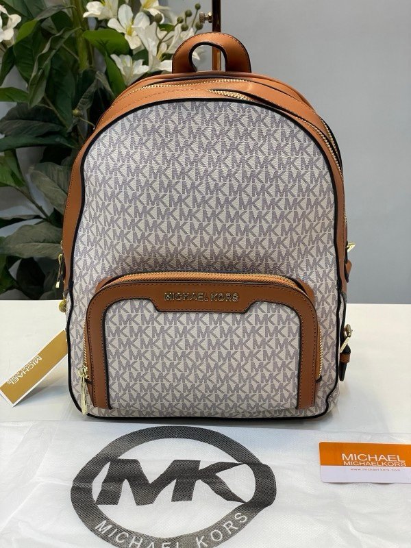 Michael Kors Double Zipper Backpack With Dust Bag (22M07-Beige_Brown)(LB)