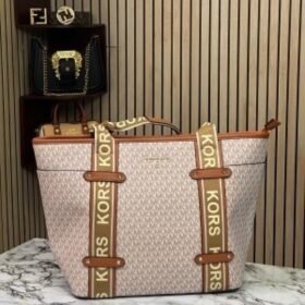 Michael Kors Maeve Monogram-Print Tote Bag With Dust Bag (Beige Brown 22314)
