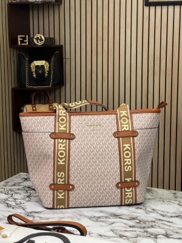 Michael Kors Maeve Monogram Print Tote Bag With Dust Bag (Beige Brown 22314)