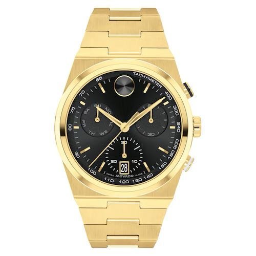 Movado Bold Gold Black Chronograph Authentic Store Quality