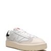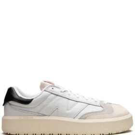 The New Balance CT302 sneakers nod to the ’80s-inspired CT300 model with the addition of the elevated midsole and reinforced rubber toe cap. Imagined in a white colourway, with black accents to the heel counter and tongue, the low-top silhouette sports the iconic ‘N’ logo to the sides for instant recognition.