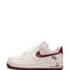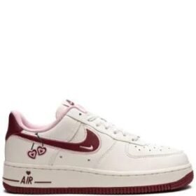 Uppers are found in a full leather build with a white base, deep red leather trim, and pink outline embroidery while subtle heart perforations adorn the lateral and medial panels. Additional heart motifs dot the “AIR” lettering on the white midsoles and rounding out the look are light pink hues lining the interior and red rubber outsoles.