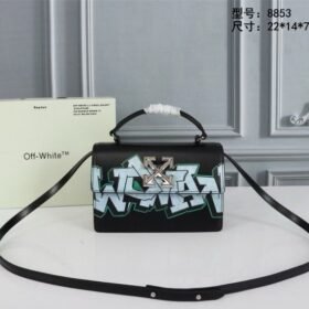 Off-White Leather Hand Held Black Graffity Jitney 1.4 Shoulder Bag (8853 Black Graffity)(LB)