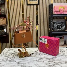 TOR Y BURCH BRITTEN HANDBAG CROCODILE PRINT WITH OG BOX AND DUST BAG AND SLING (BROWN) (S2)(MT)