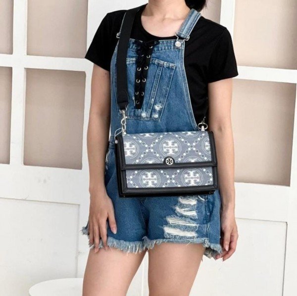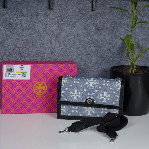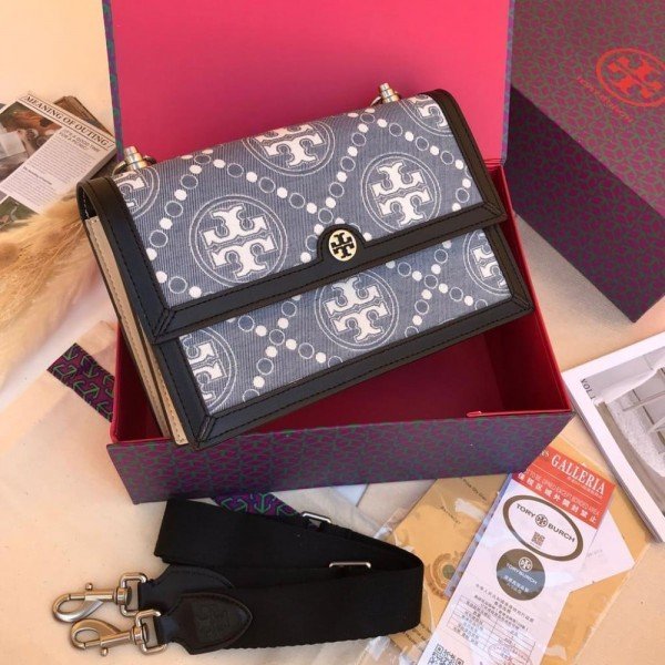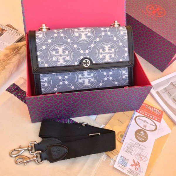 Tory_Burch_T Monogram Shoulder Bag With Adjustable Strap With OG Box & Dust Bag (Black – 616)
