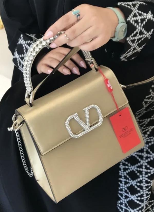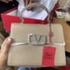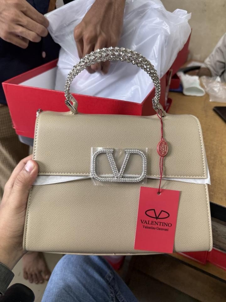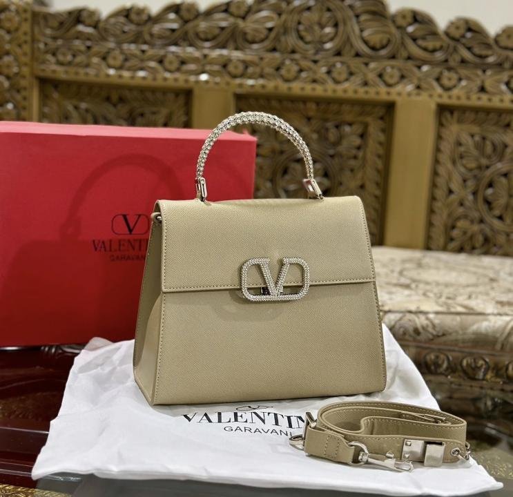 VALENTIN.O STONE GARAVANI LOGO TOP HANDLE KHAKHI PREMIUM BAG WITH OG BOX & PACKING